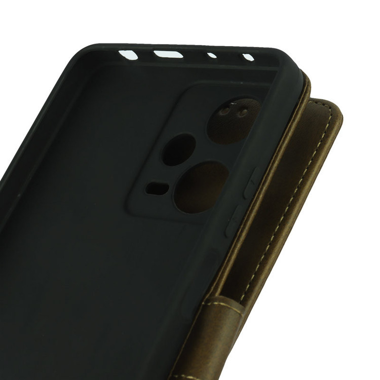 کیف کتابی کلاسوری چرمی مگنتی محافظ لنزدار Xiaomi Redmi Note 12 Pro 5G- رنگ قهوه ای تیره