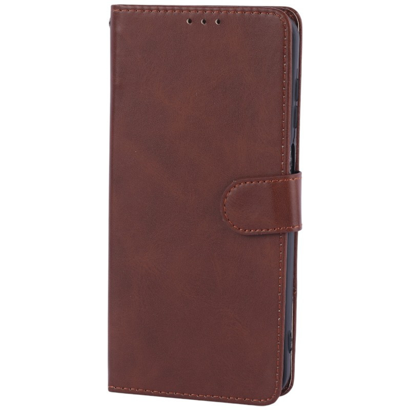 کیف کتابی کلاسوری چرمی مگنتی سامسونگ Galaxy A17 محافظ لنزدار - قهوه ای تیره
