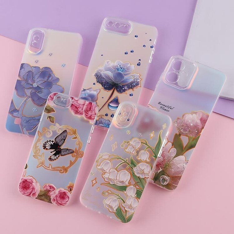 قاب دخترانه هولوگرامی طرح گل فانتزی محافظ لنزدار آیفون7/8plus