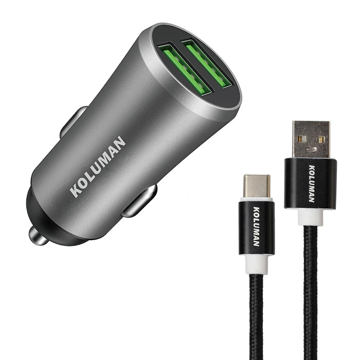 شارژر فندکی شرکت کلومن مدل KC - C04 همراه با کابل تایپ سی