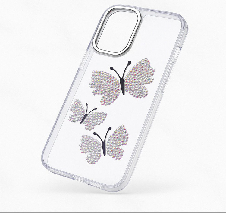 قاب دخترانه فانتزی بیرنگ و شفاف با طرح پروانهای برجسته سهبعدی