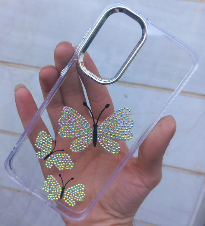 قاب دخترانه فانتزی بیرنگ و شفاف با طرح پروانهای برجسته سهبعدی