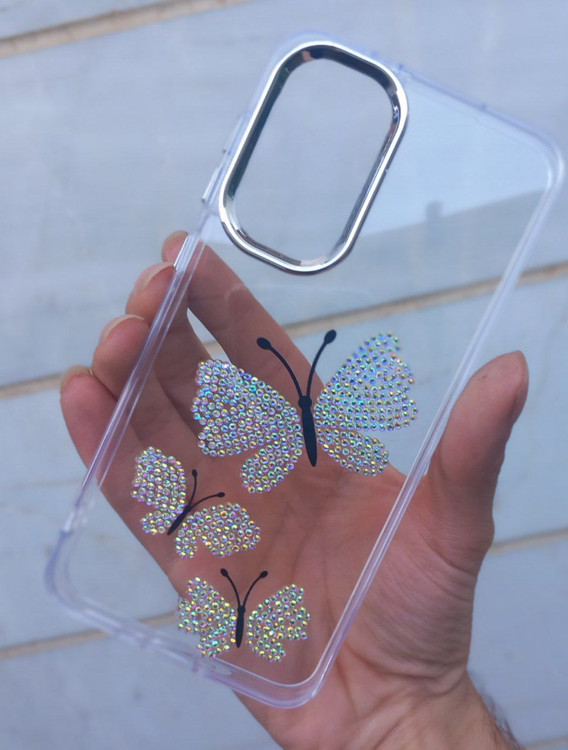 قاب دخترانه فانتزی بیرنگ و شفاف با طرح پروانهای برجسته سهبعدی